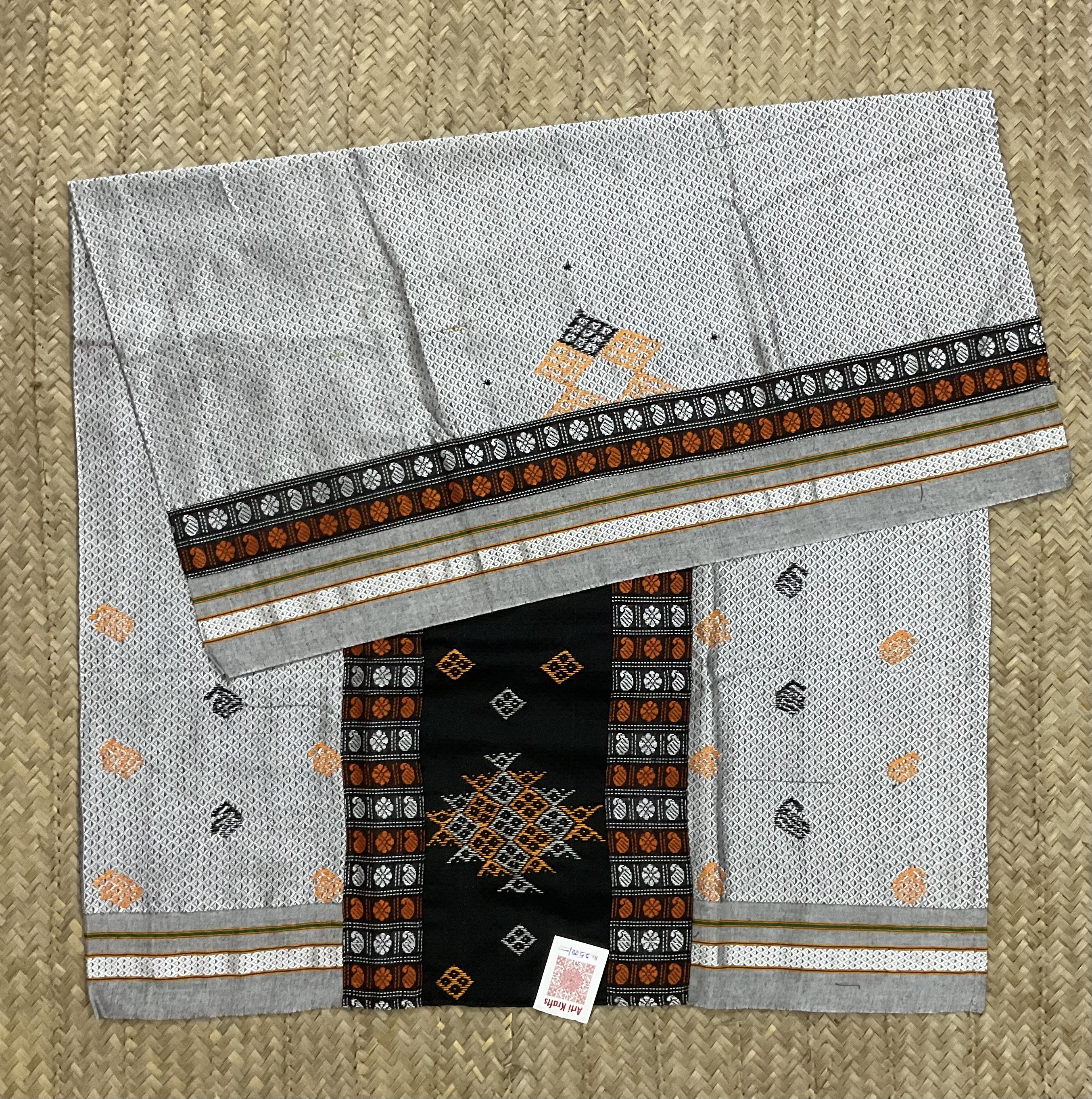 Silver Slash With Black Patch Khunn Blouse Piece With Handmade Negi Kasuti.