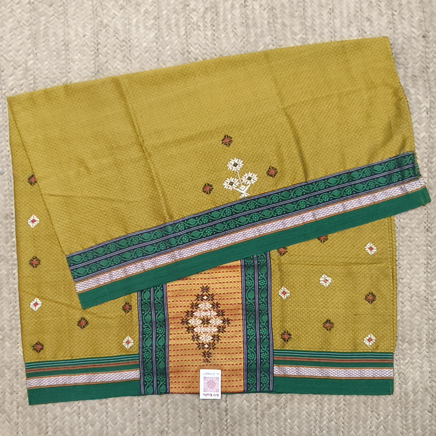Turmeric Yellow Khunn Blouse Piece With Handmade Negi Kasuti.