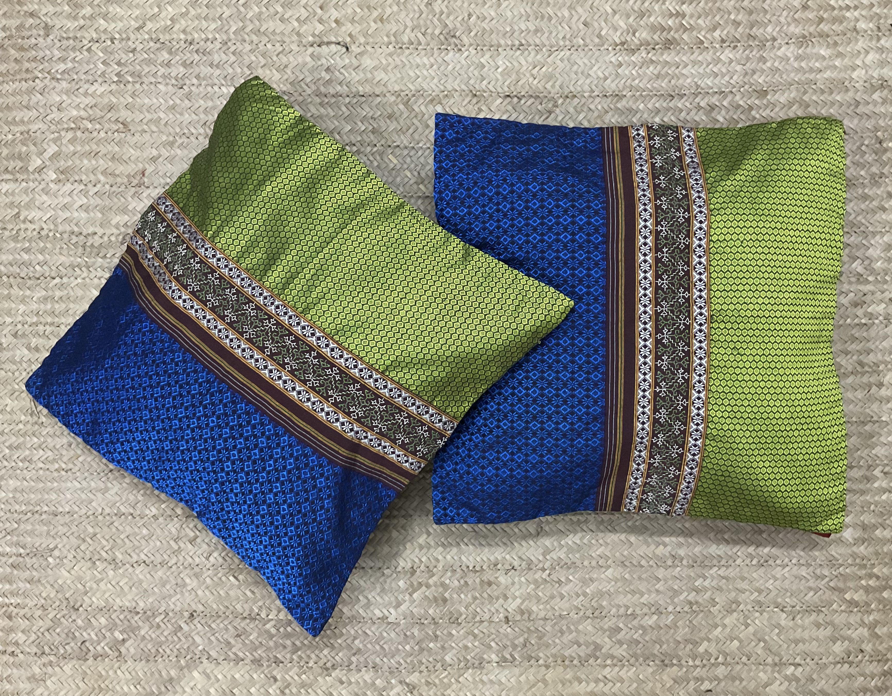 Blue and Green Colour Khunn Cushion Cover With Handmade Kasuti.