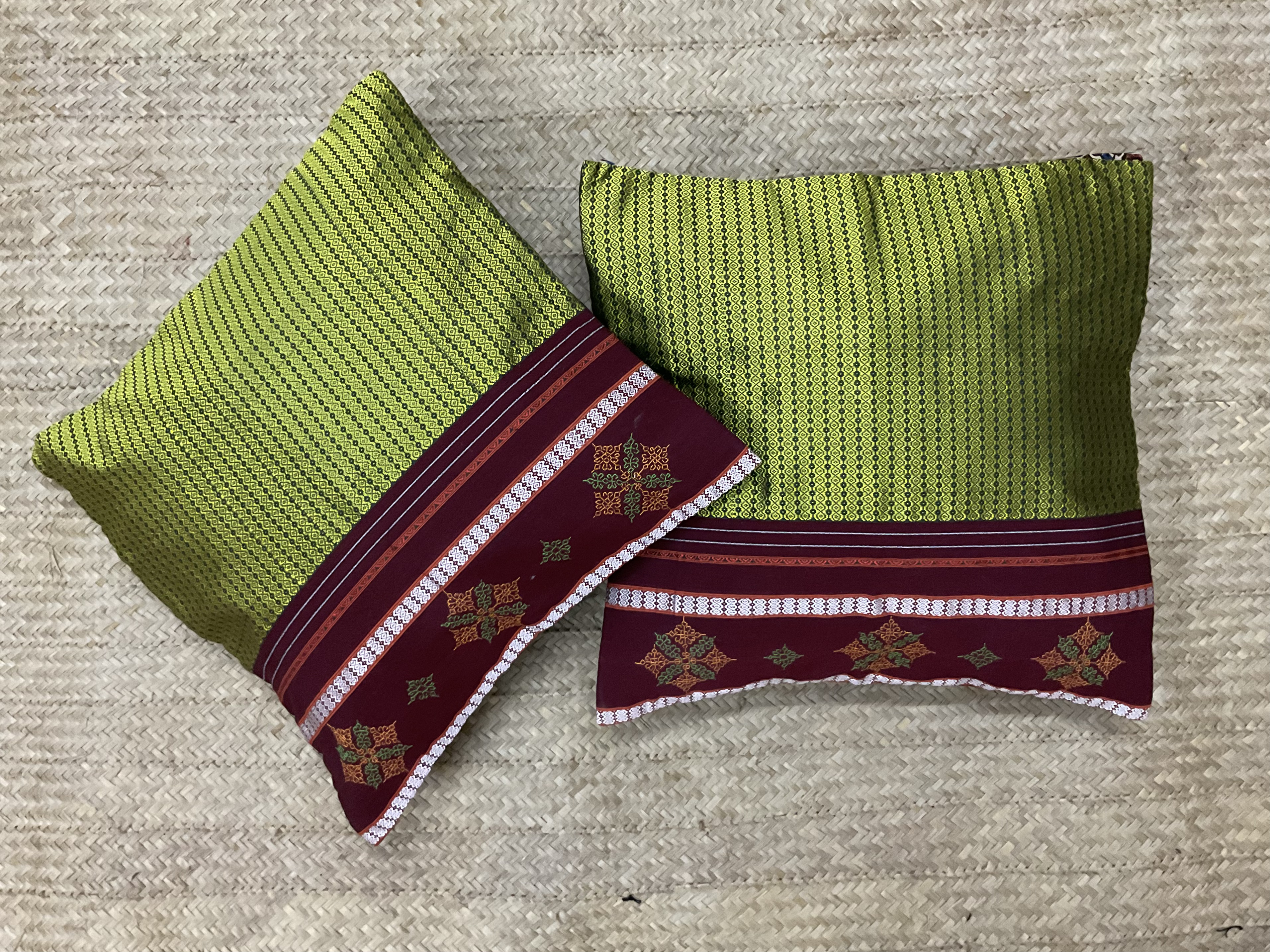 Neon Green Khunn Cushion Cover With Handmade Kasuti.