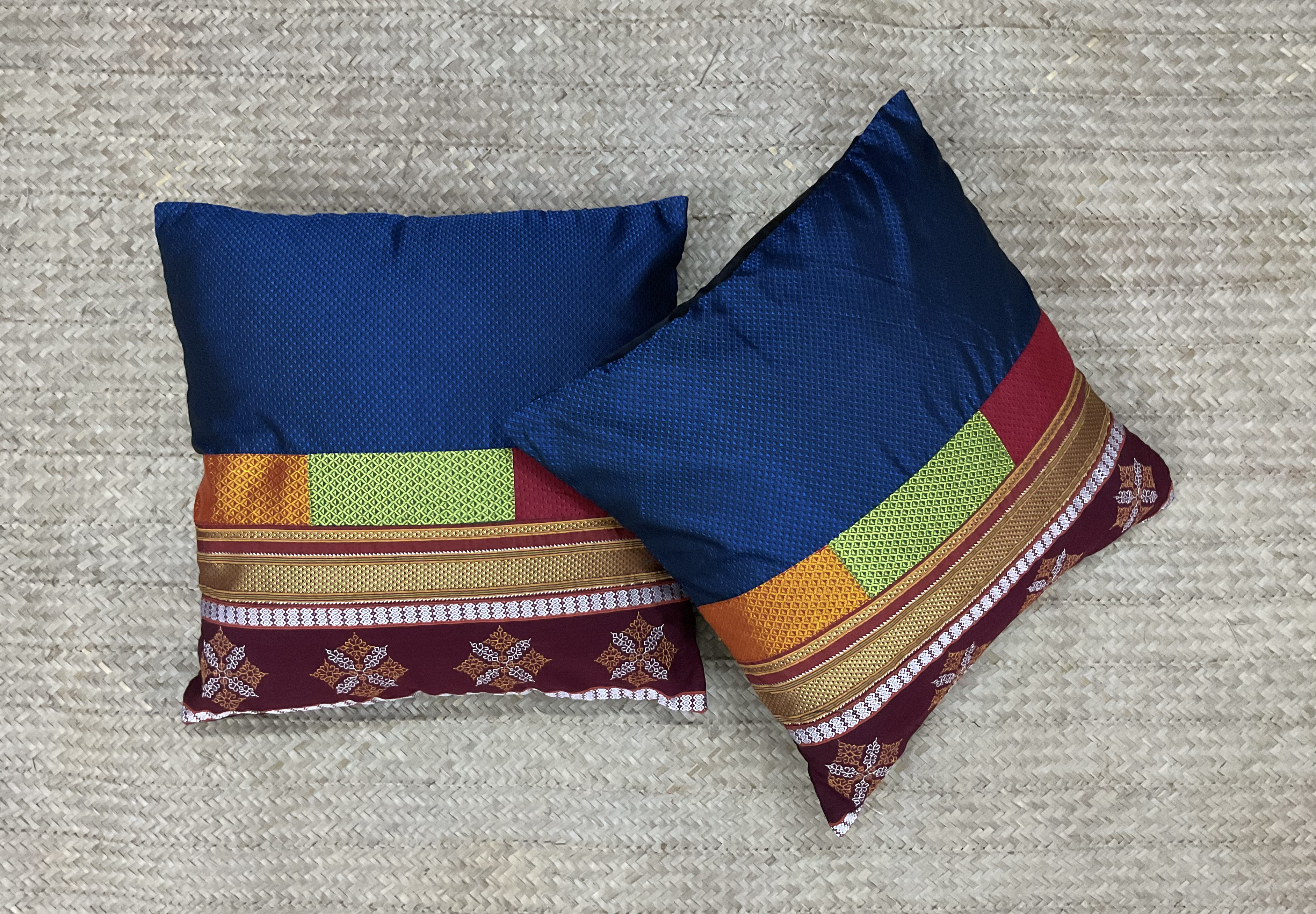 Royal Blue Cushion Cover With Handmade Kasuti.