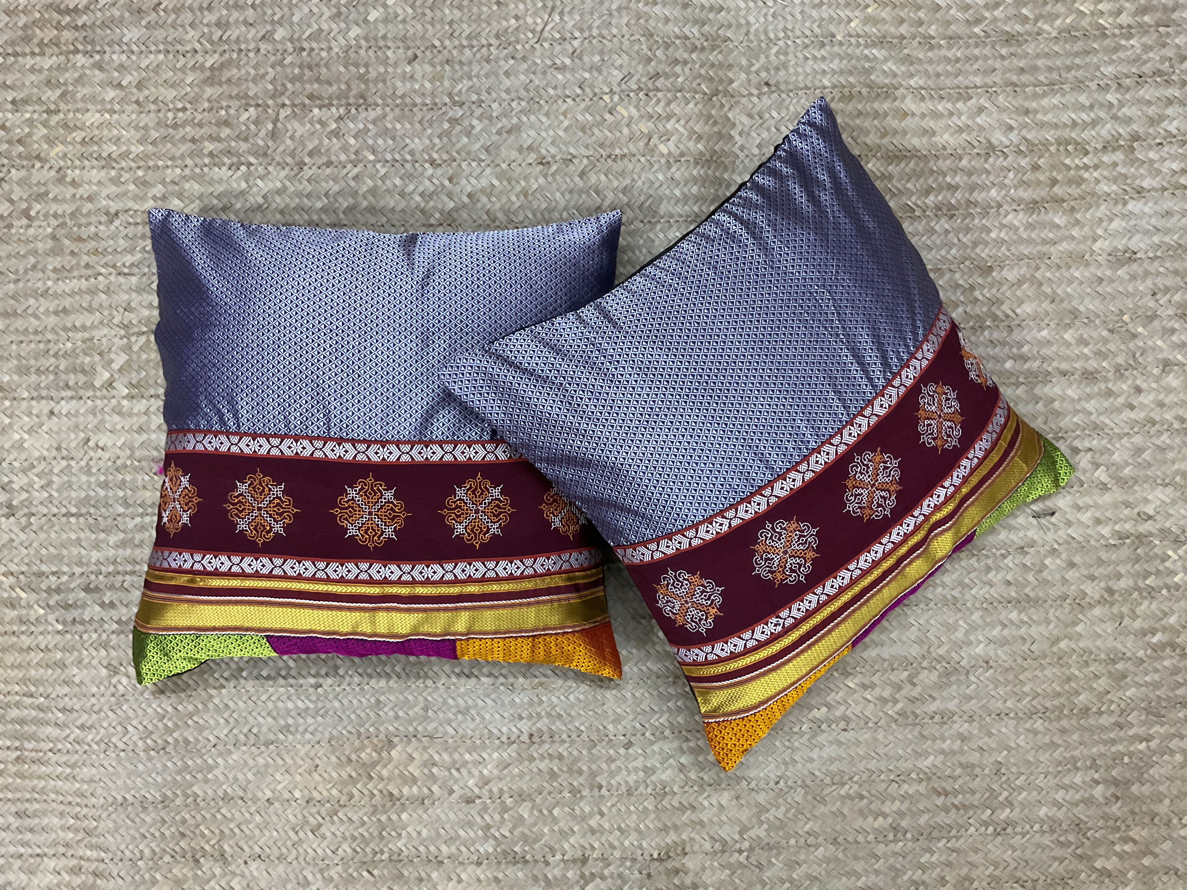 Grey Colour Cushion Cover With Handmade Kasuti