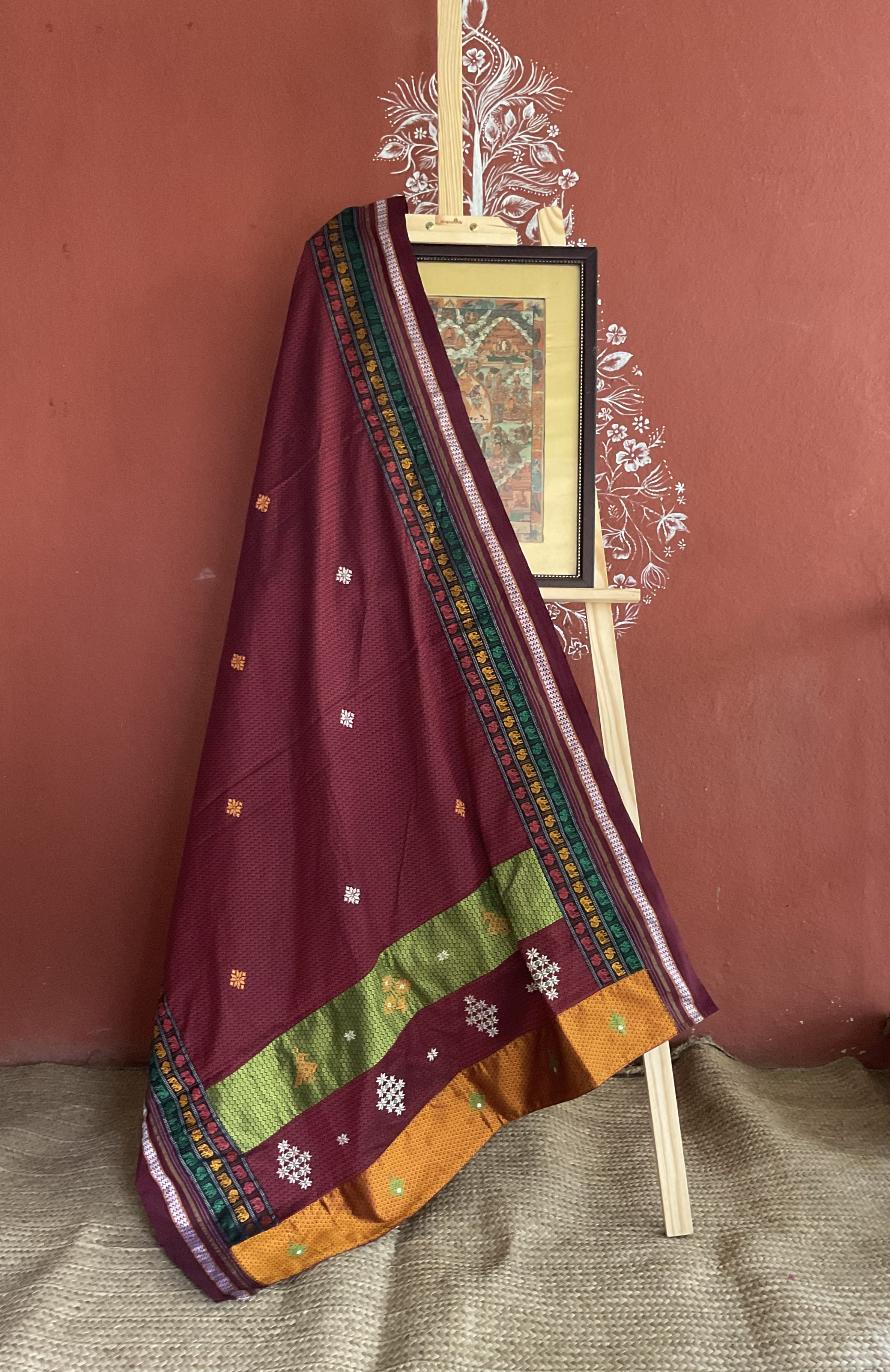 A beautiful traditional weave of khunn fabric with handmade kasuti. Perfect. Subtle and elegant