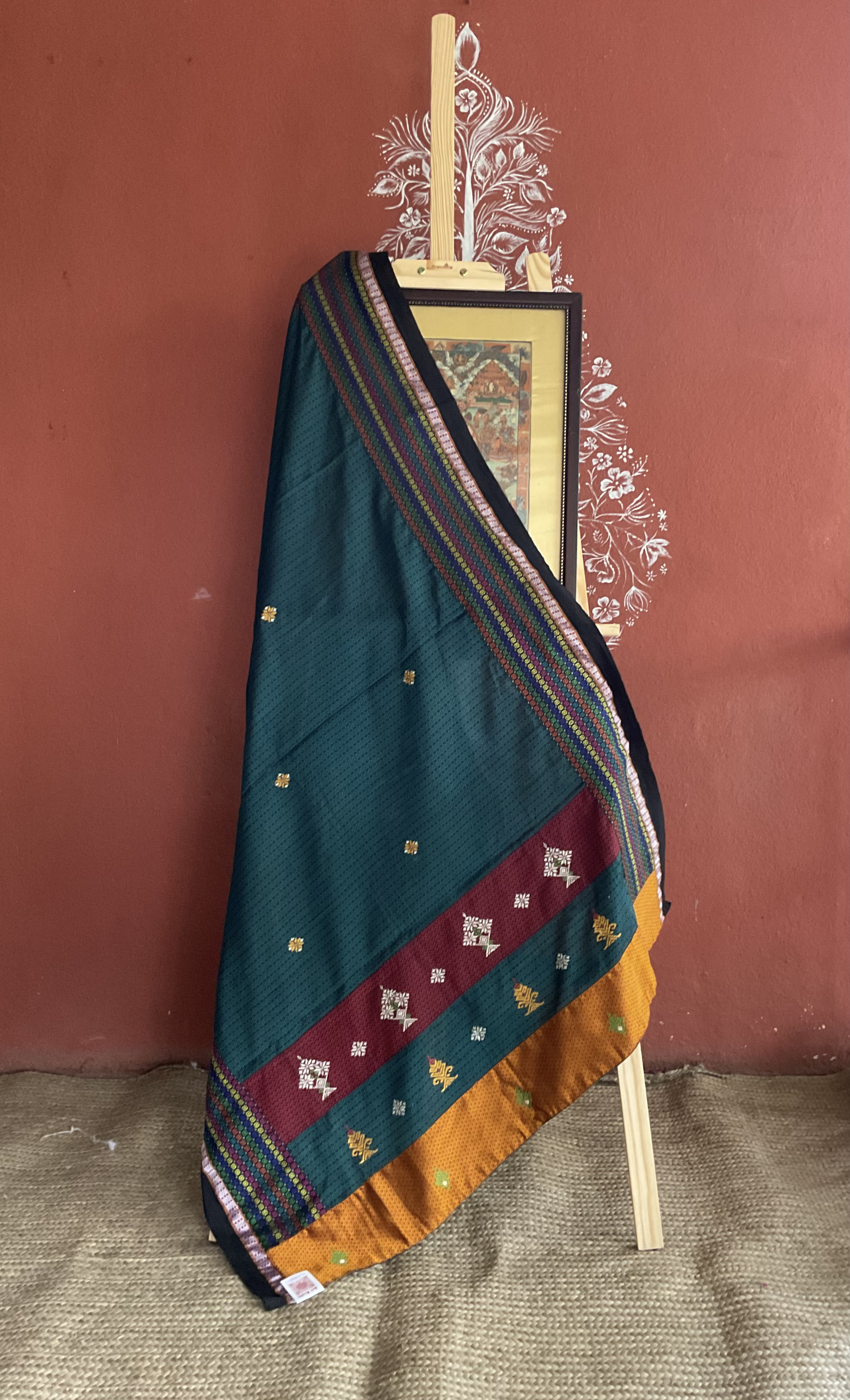 Green Colour Khunn Dupatta With Handmade Negi Kasuti