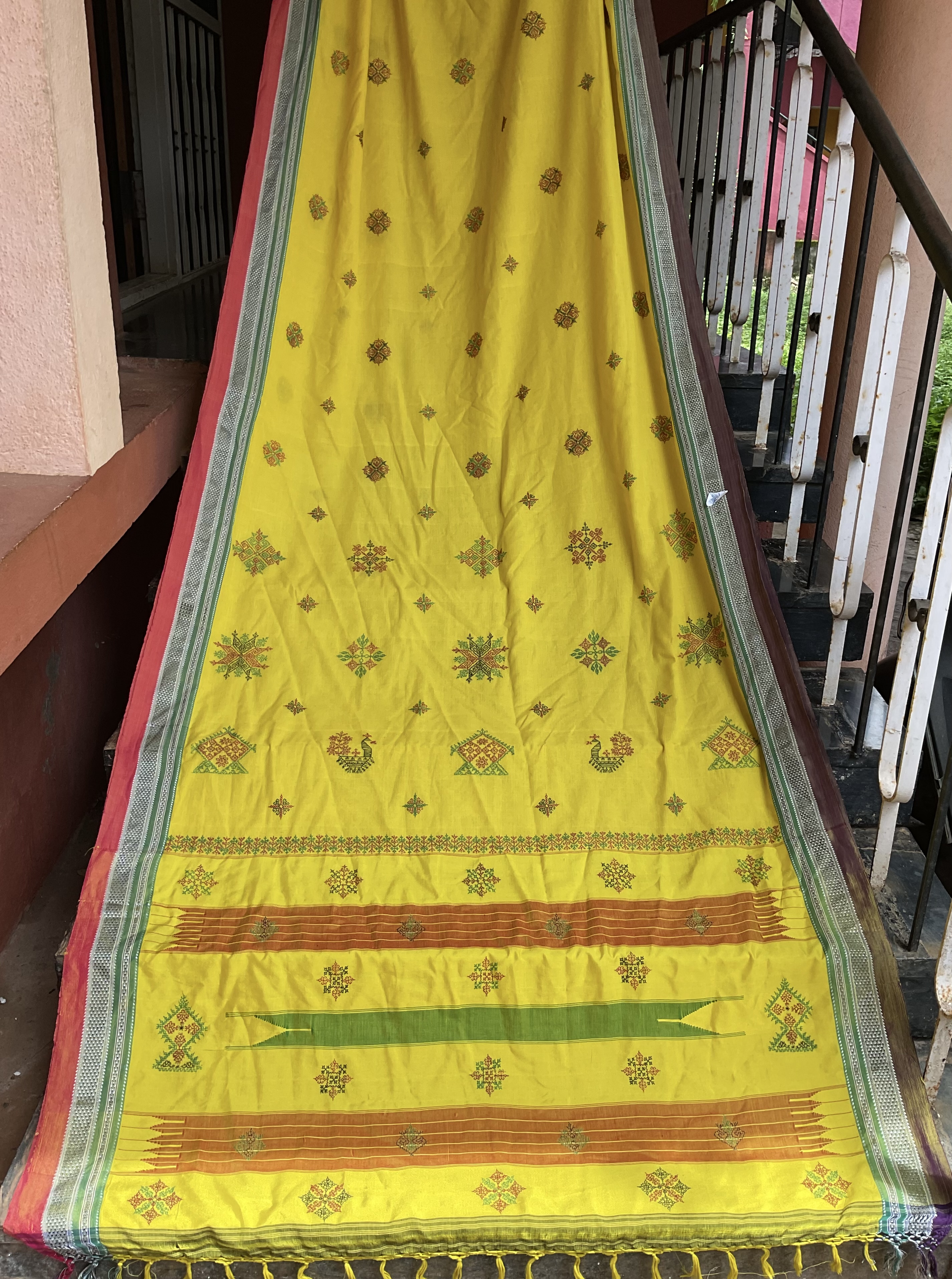 Yellow handloom Ilkal saree with handmade kasuti