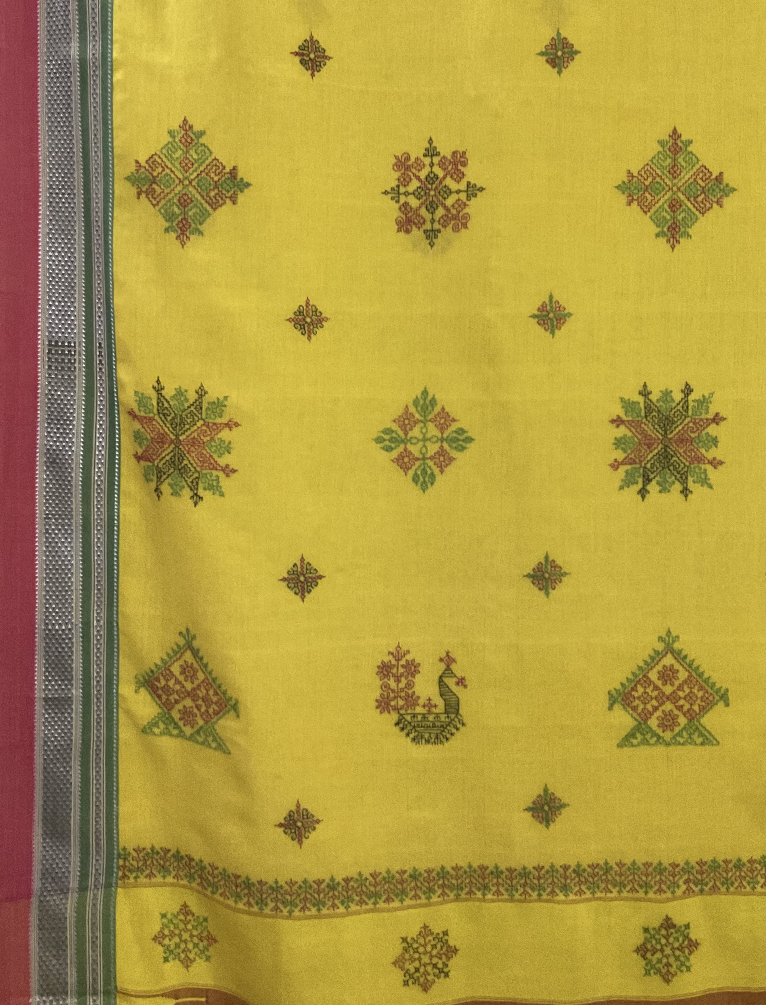 Handloom Ilkal silk with handcrafted kasuti