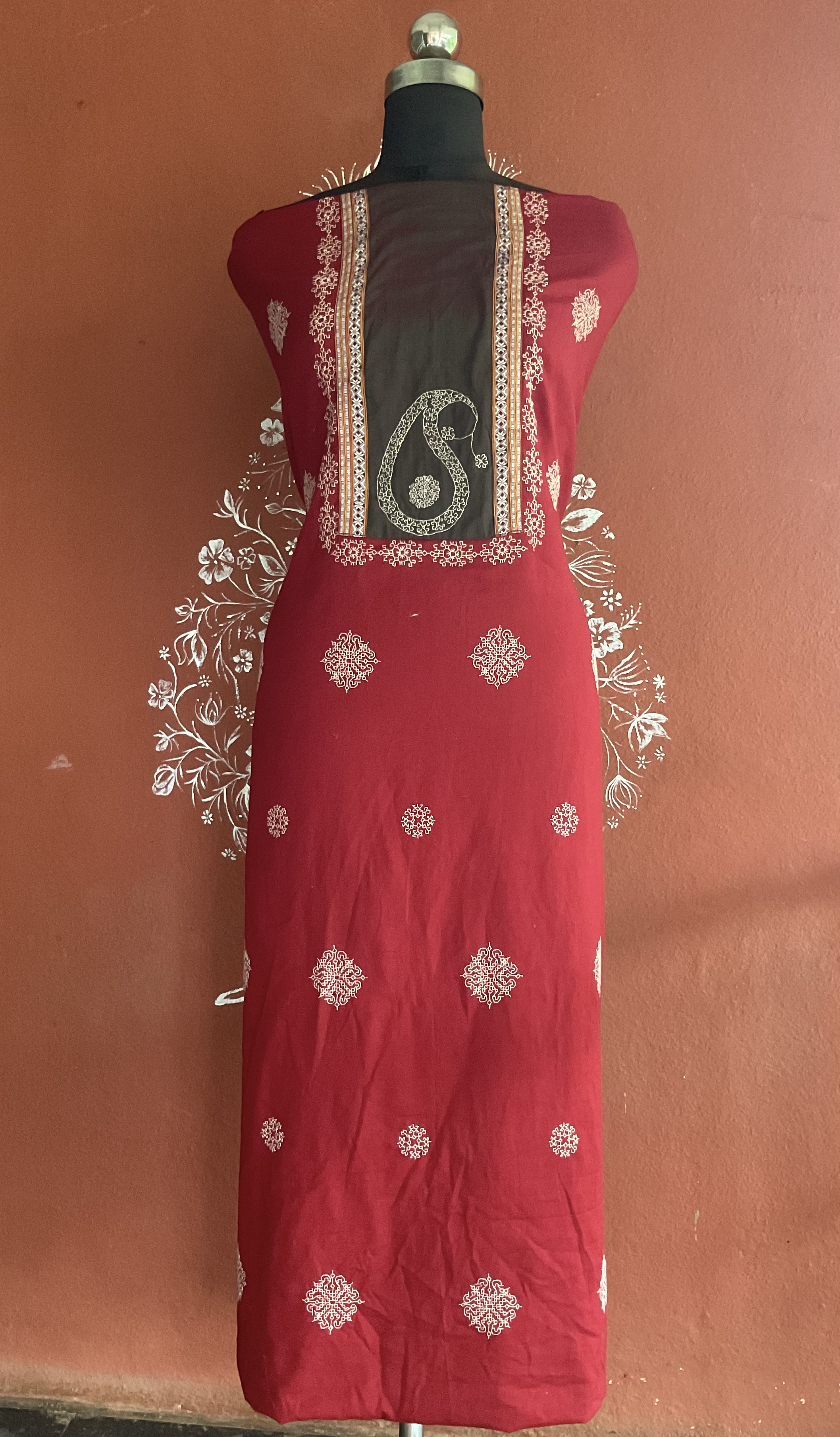 Red Cotton Kurta Piece With Handmade Kasuti.