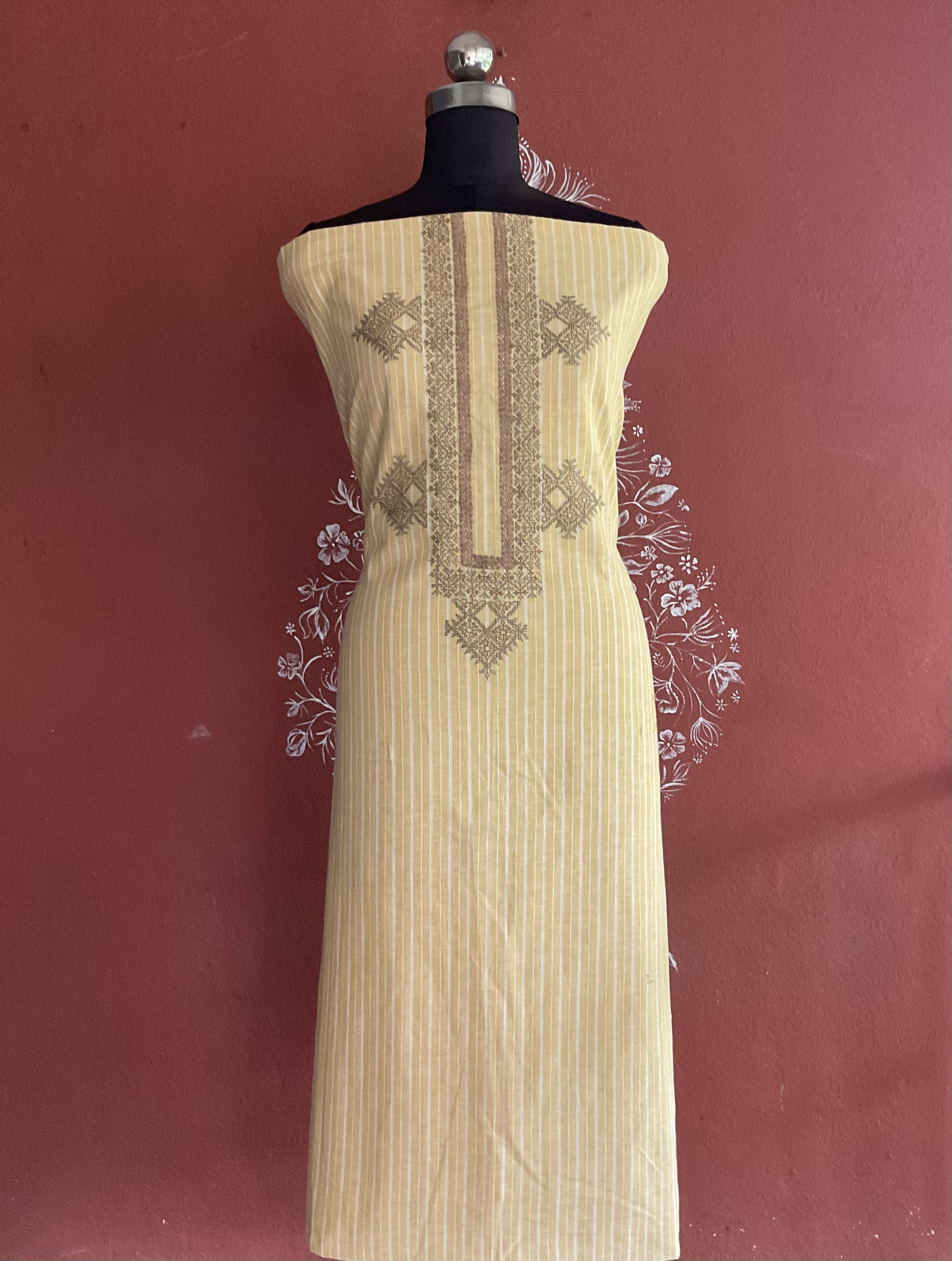A beautiful cotton kurta piece with an unique patch work yoke and intricate Handmade Kasuti.