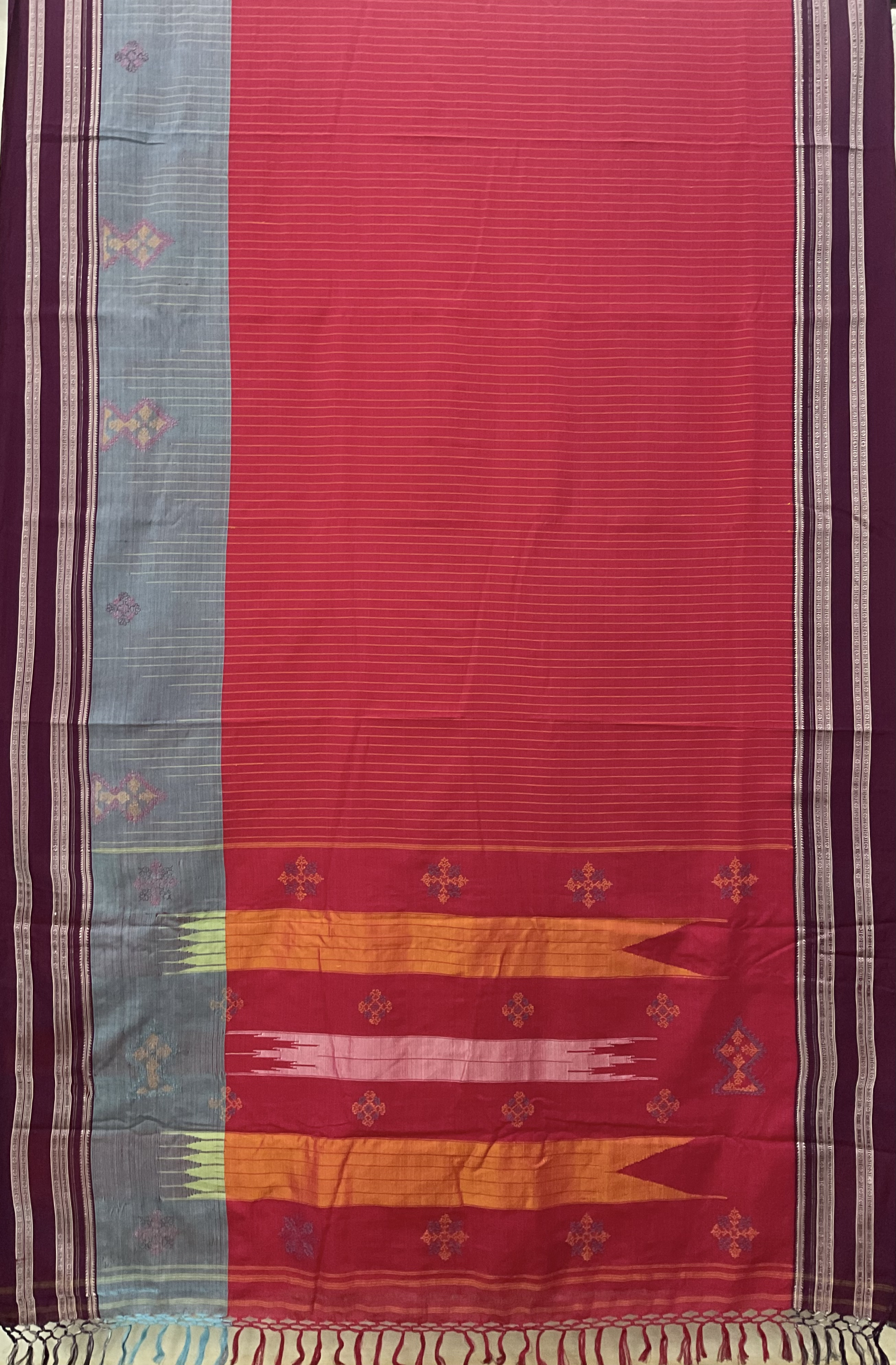 Handloom Ilkal silk with handcrafted kasuti