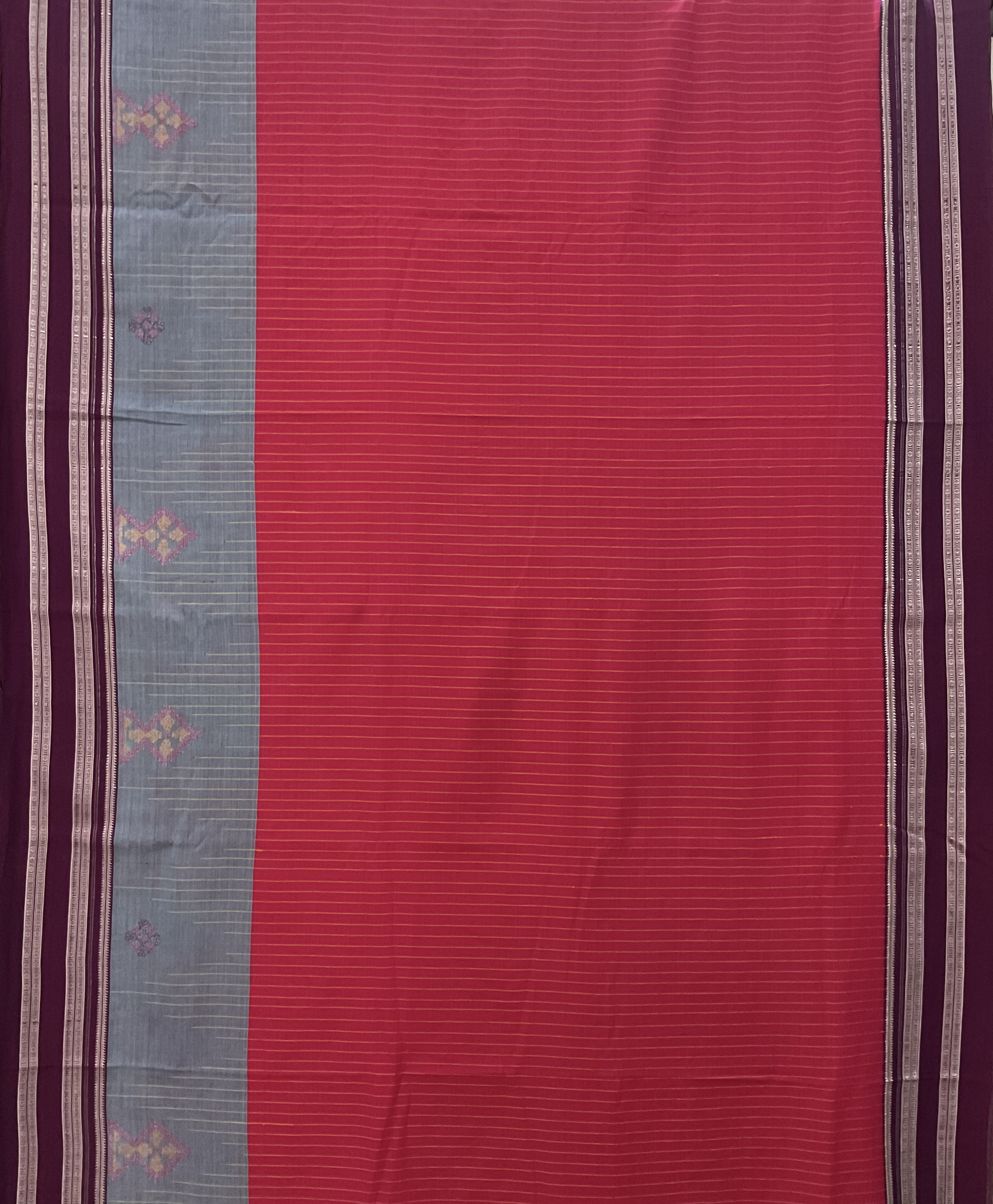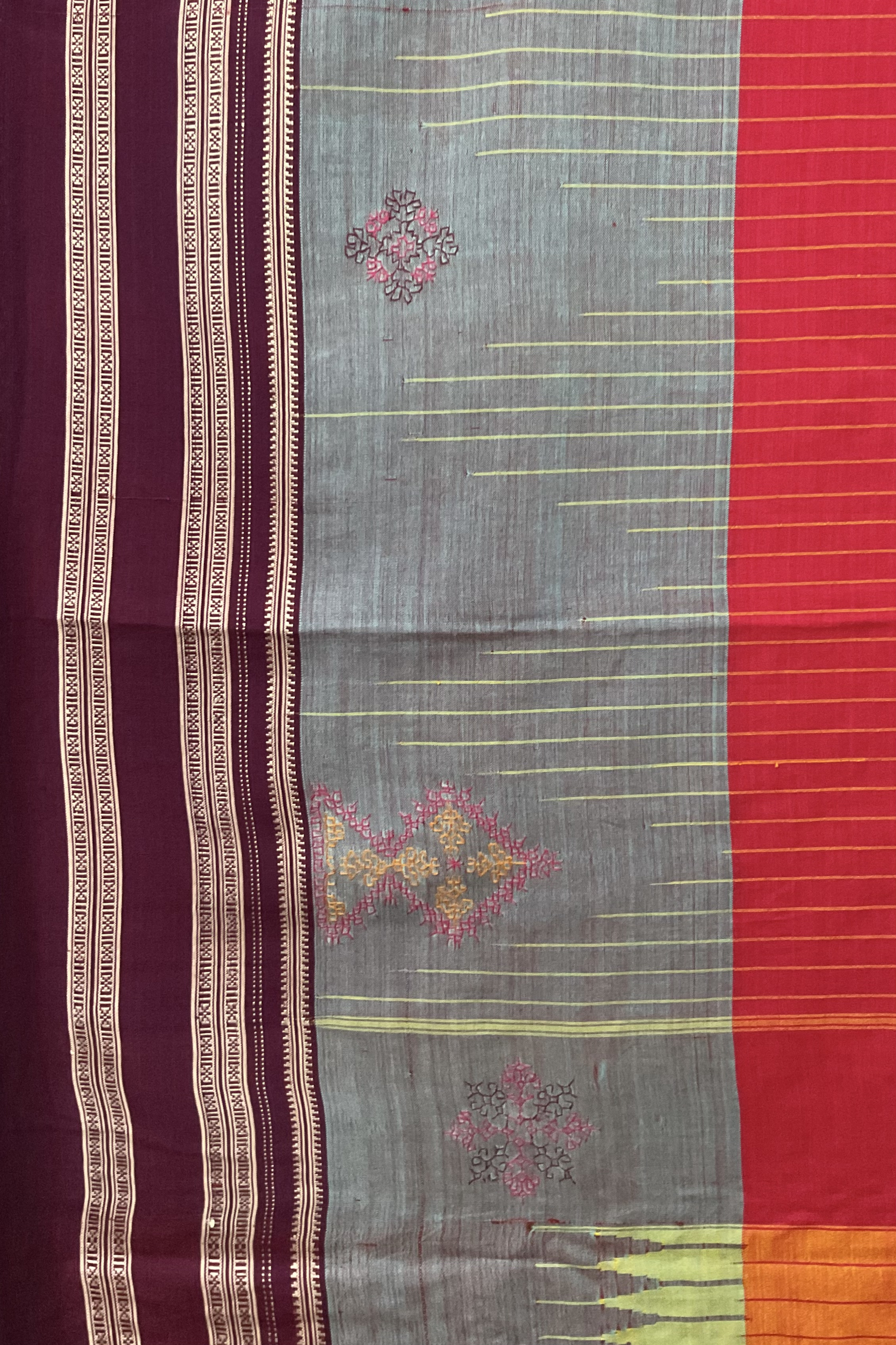 Maroon handloom Ilkal cotton saree with handcrafted kasuti