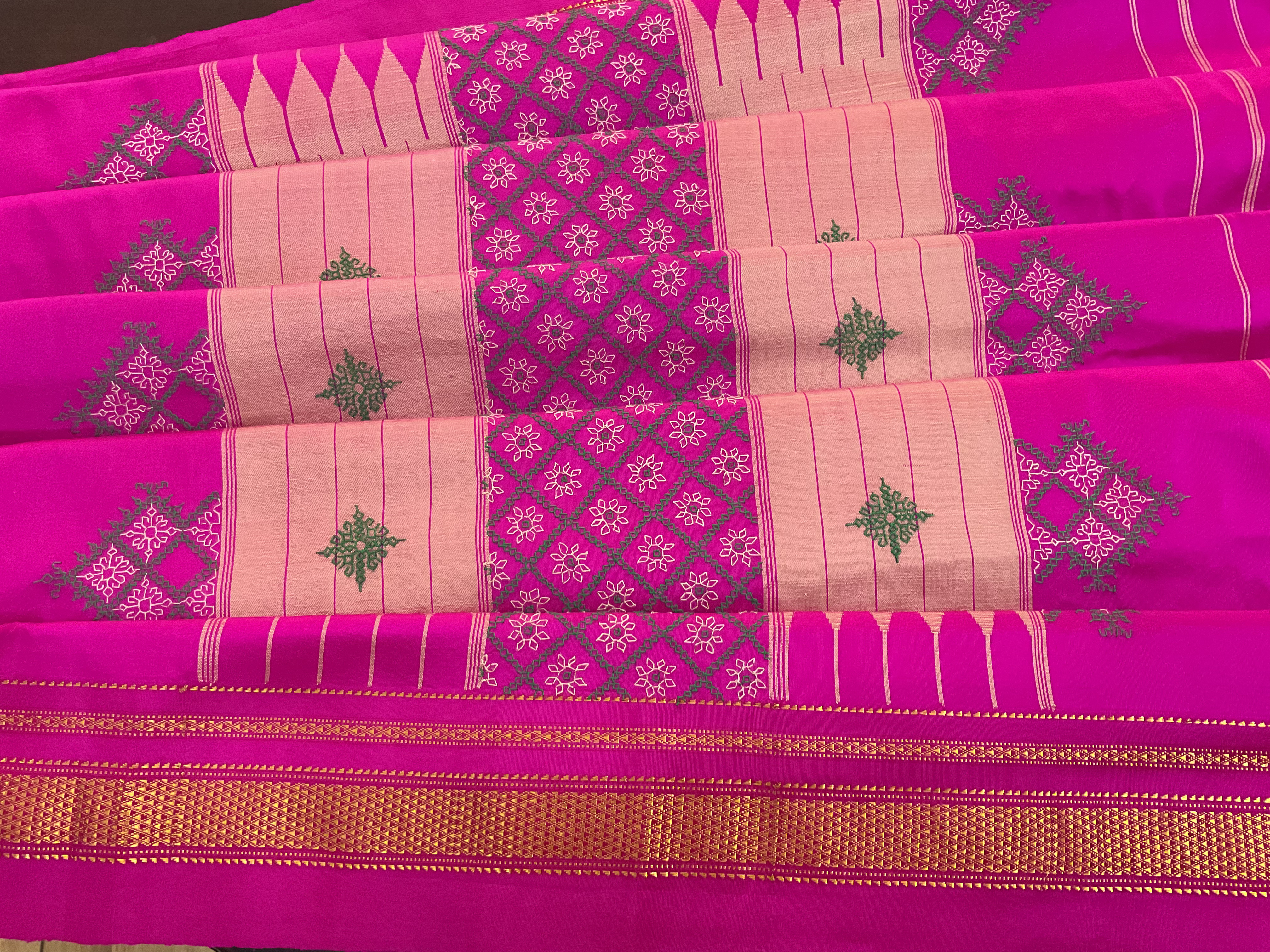 saree is beautifully adorned with intricate kasuti embroidery with all traditional