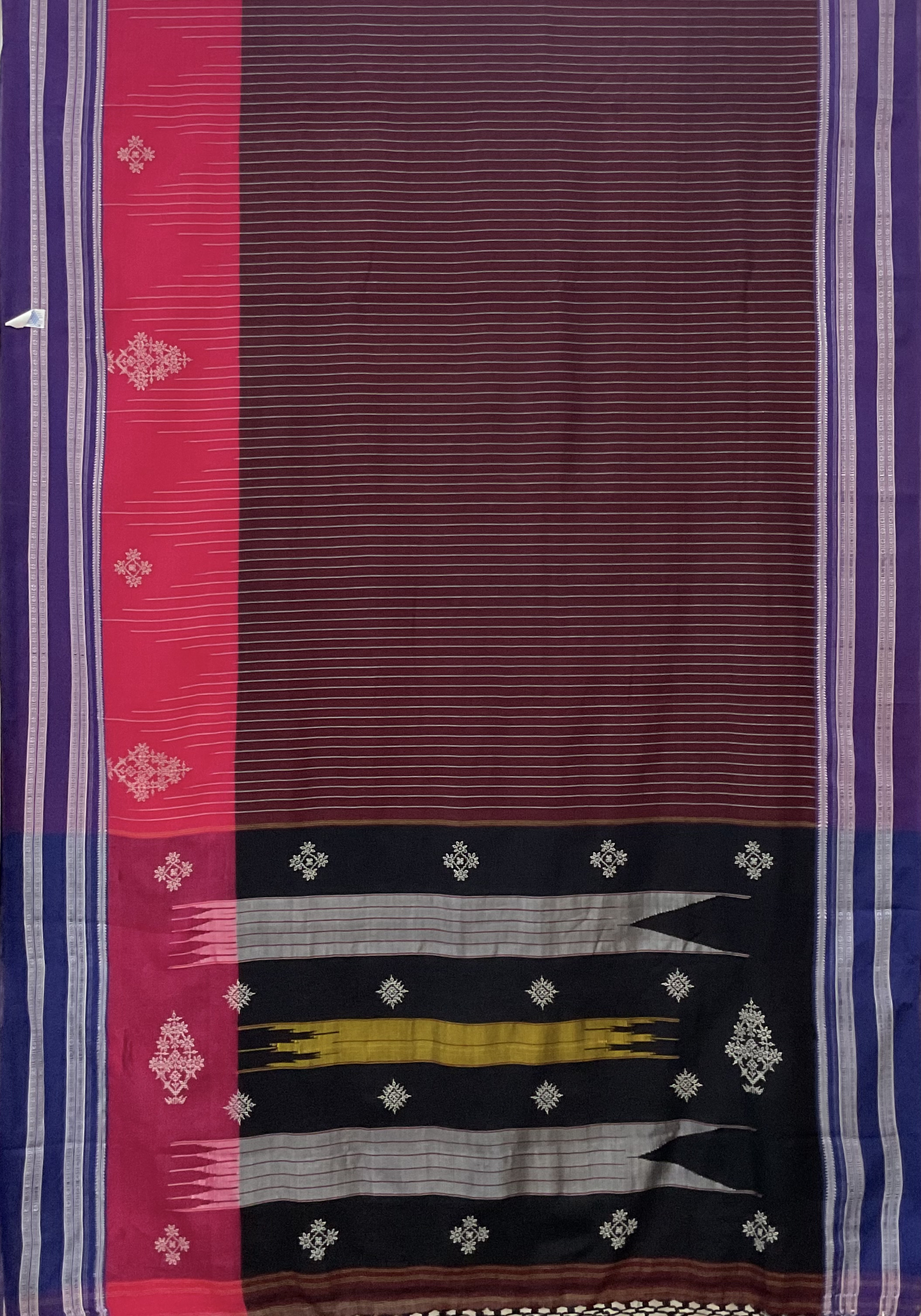 Dark maroon Ilkal Cotton Saree With Handmade Kasuti