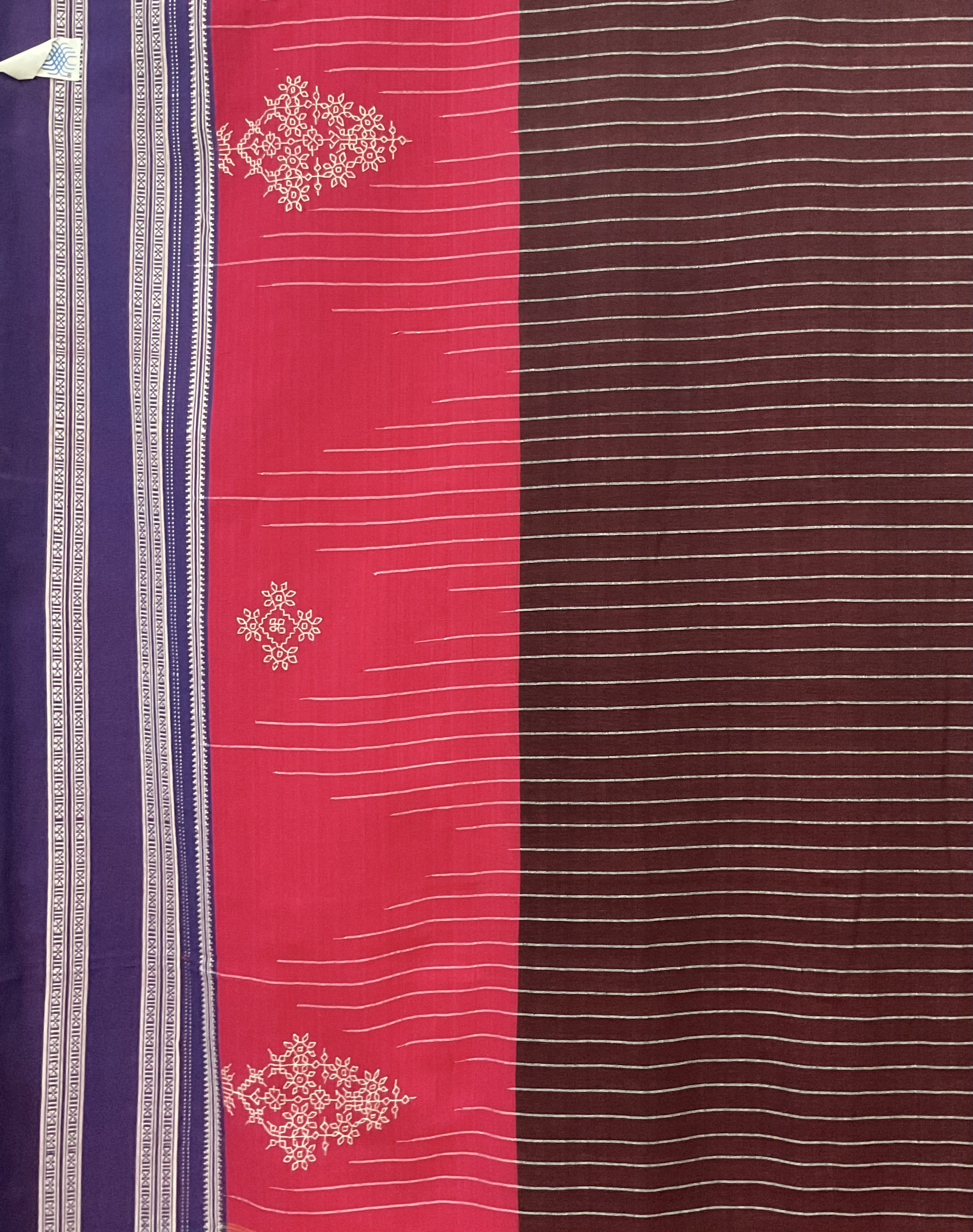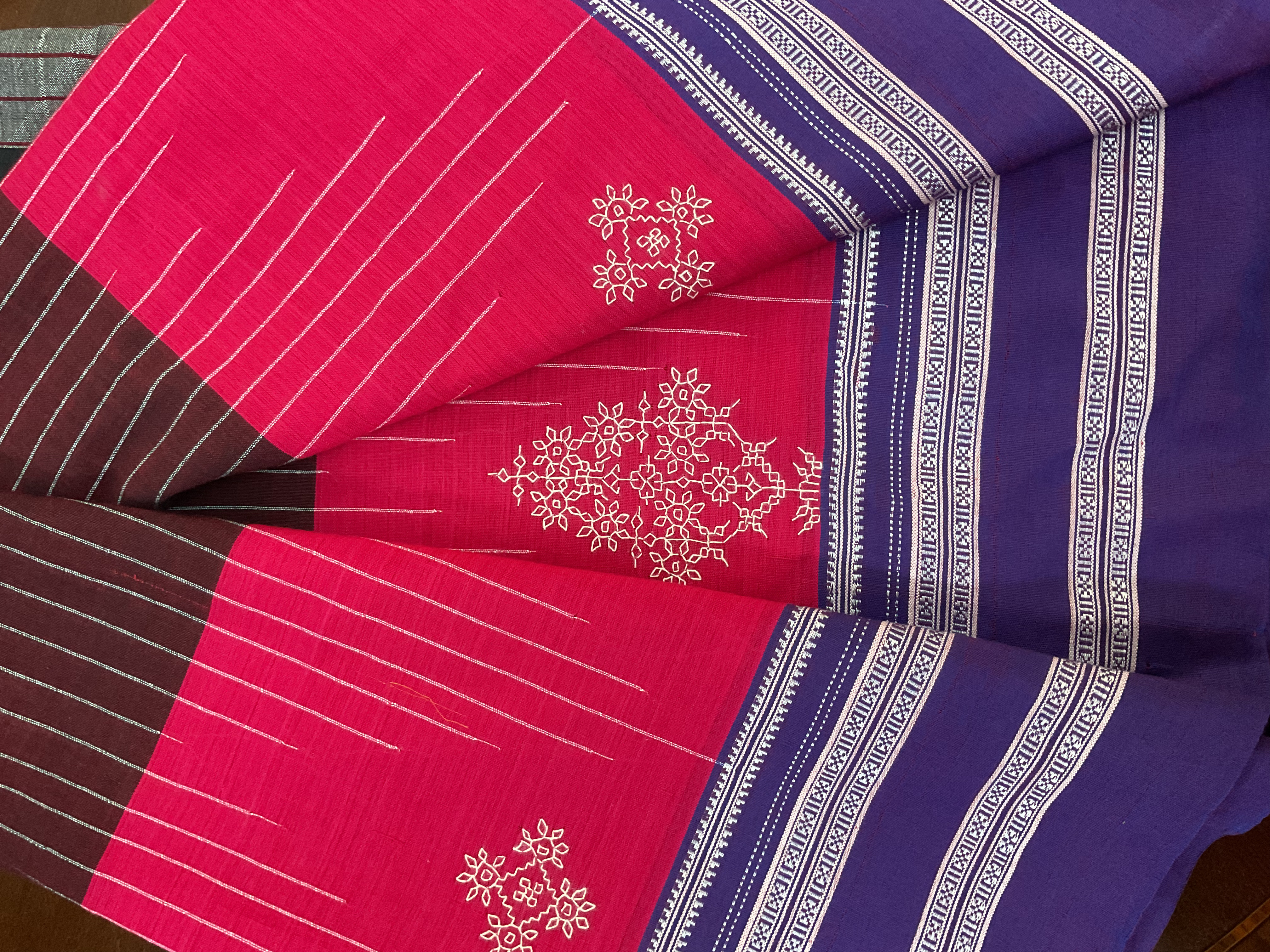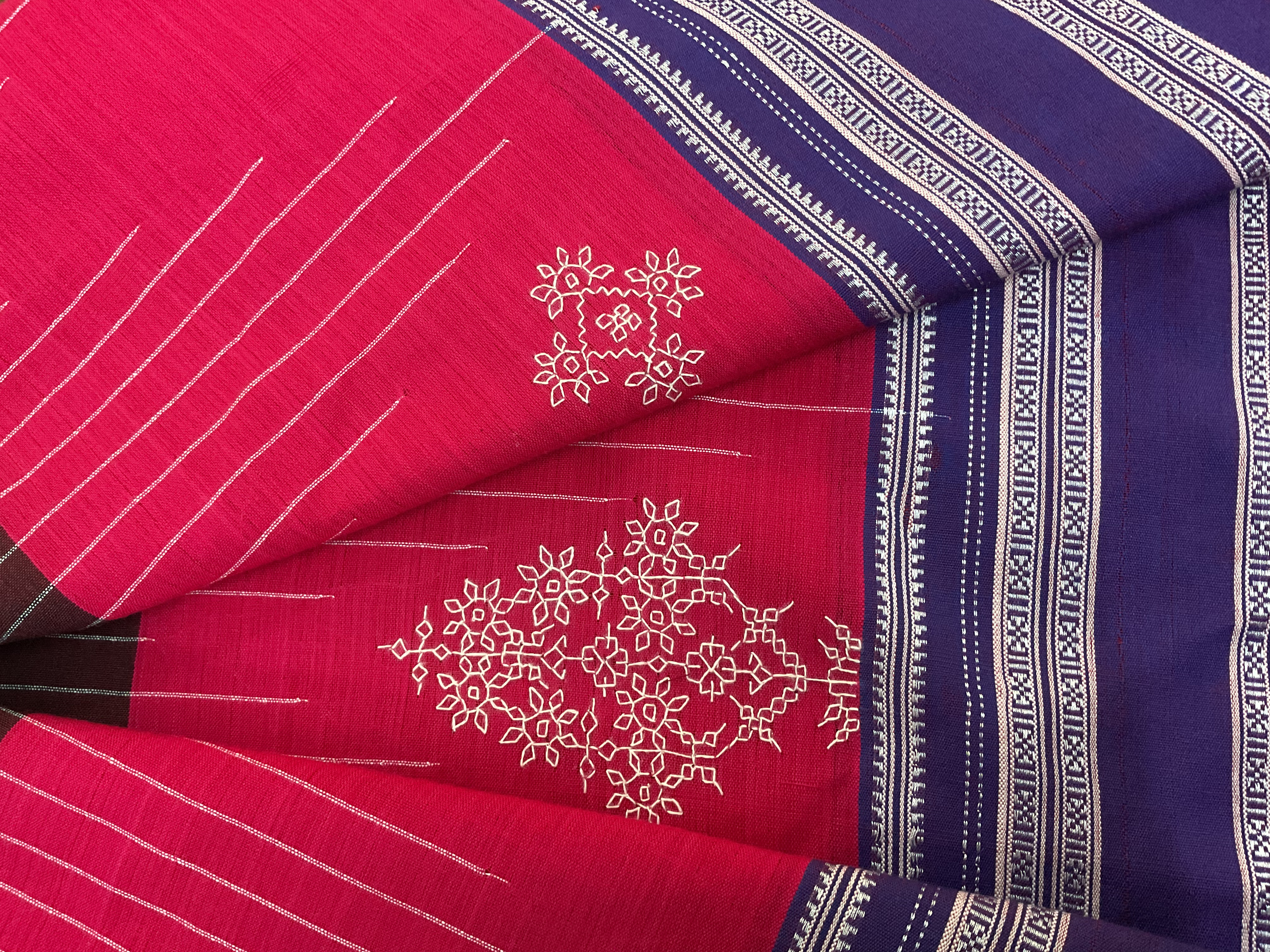 Dark Pink Ilkal Cotton Saree With Handmade Kasuti